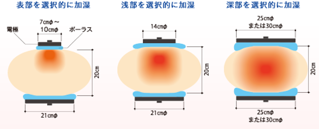 アスクーフ8は使用する電極のサイズの組み合わせを変えることで選択的な加温が可能になります。