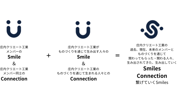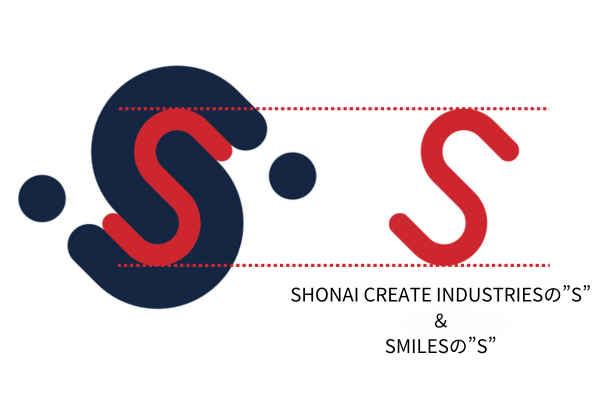 その真ん中にCREATE FOR SMILESのスローガンのもと、ものづくりを通じ笑顔を繋いでいく仕組みをつくることを目指す企業「Shonai create industries (庄内クリエート工業)」の頭文字である