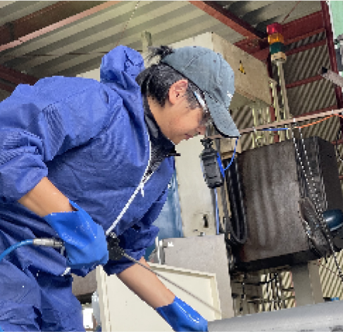 仕事内容としては、装置組立・現地据付工事・保守点検・客先からの問い合わせ対応を行っています。 -