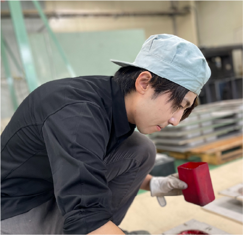 作業環境が夏は暑く、冬は寒く、重量物を扱うので危険と隣り合わせで大変な仕事です。でも、一から自分で製品を作り上げる楽しさがあるのでつらさも吹っ飛びます。