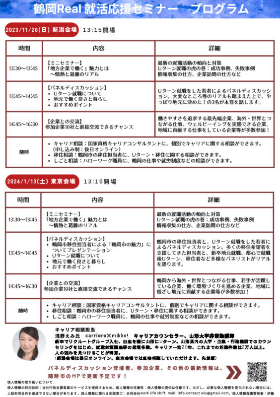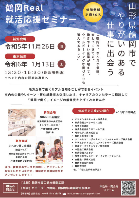【新潟(11月)・東京(1月)開催】鶴岡Real就活応援セミナー