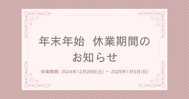 休業期間: 2024年12月28日(土) ~ 2025年1月5日(日)