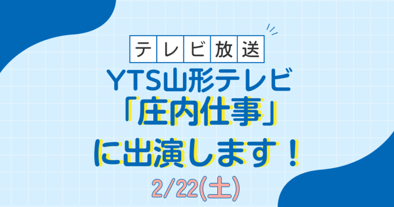 この度、YTS山形テレビにて放映される「庄内仕事」に弊社が出演させていただく運びとなりましたのでお知らせいたします。