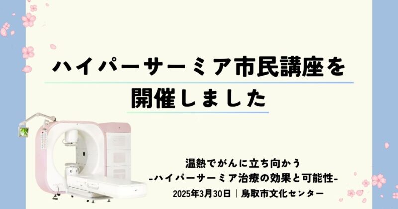 2025年3月30日(日)、鳥取市のとりぎん文化会館にてハイパーサーミア治療をテーマにした鳥取市民公開講座を開催いたしました。