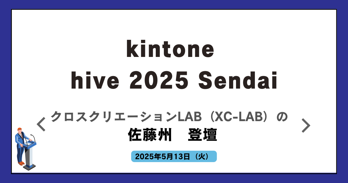 この度、株式会社庄内クリエート工業 クロスクリエーションLAB(XC-LAB)の佐藤州が「kintone hive 2025 Sendai」に登壇することとなりましたので、お知らせいたします。