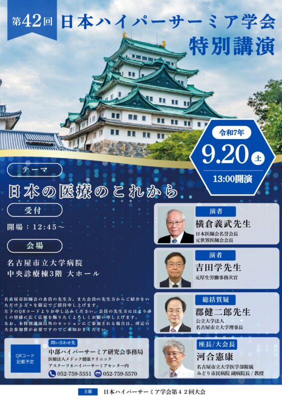 日本ハイパーサーミア学会 第42回大会において、「日本の医療のこれから」をテーマに特別講演を開催いたしました。